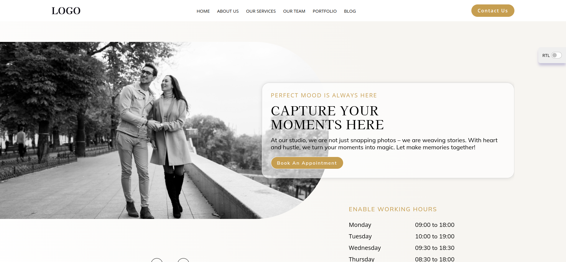 This theme goes beyond aesthetics. It fosters engagement and interaction with potential clients. Strategically placed calls to action, like Book Now buttons and contact forms, make it easy for visitors to connect with you for inquiries and schedule sessions directly through BookingGo intuitive scheduling system. Furthermore, you can showcase special packages and promotions directly within your galleries, sparking interest and driving potential clients to take the next step.